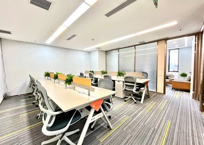 交付状态:全新装修、全齐办公家具加厚玻璃,4个功能间32工位,按套出租。